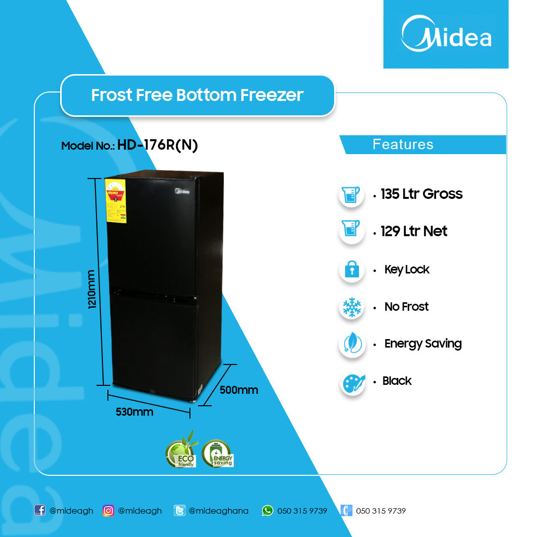 Midea 129Ltrs Double Door Bottom Freezer