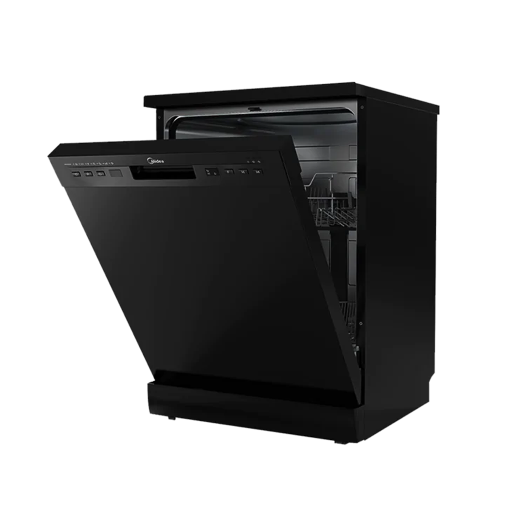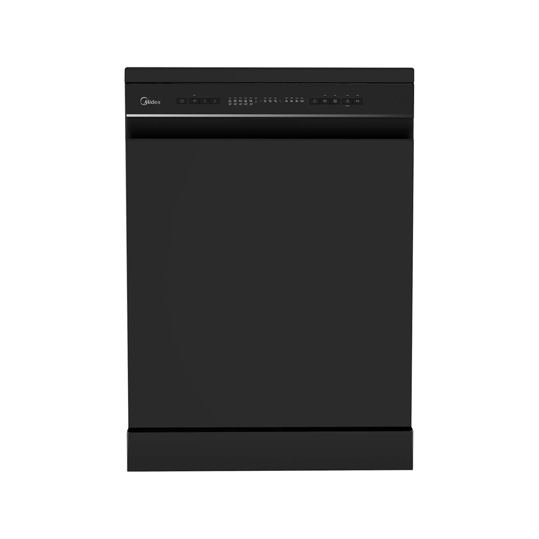 The Midea WQP14-W7703L(B) Built-in Dishwasher is a modern kitchen appliance designed to provide efficient and hygienic dishwashing for large households. With a capacity of 14 place settings, the dishwasher can handle a large number of plates, bowls, glasses, and utensils in a single cycle, making it ideal for families or kitchens that require frequent cleaning of tableware. Its fully built-in design allows the appliance to be integrated neatly into kitchen cabinetry, giving the kitchen a clean and stylish appearance. One of the key highlights of this dishwasher is its advanced washing system with multiple cleaning programs. The appliance offers eight washing programs, including intensive, eco, rapid, glass, and other specialized cycles that allow users to choose the most suitable program depending on the type and level of dirt on the dishes. This flexibility helps achieve optimal cleaning performance while minimizing water and energy consumption. The dishwasher also features three layers of dish racks, allowing efficient organization of cookware, plates, and cutlery. The additional rack layer increases loading capacity and ensures that water and detergent reach every item during the washing process. High-temperature cleaning technology helps eliminate bacteria and grease, ensuring hygienic results after every wash cycle. Another useful feature is the Extra Drying function, which improves drying performance after the washing cycle. This feature ensures that dishes come out cleaner and drier, reducing the need for manual drying. The dishwasher also includes a half-load option, which allows users to wash smaller loads using less water and electricity. In addition, a delay start function (3, 6, 9, or 12 hours) allows users to schedule the wash cycle according to their convenience. For enhanced convenience, the dishwasher supports Wi-Fi connectivity, enabling smart control and monitoring through compatible applications. With its combination of large capacity, multiple wash programs, energy-efficient operation, and smart connectivity, the Midea WQP14-W7703L(B) provides a reliable and practical solution for modern kitchens. Overall, this dishwasher is designed to simplify household cleaning tasks while maintaining excellent hygiene and efficiency.