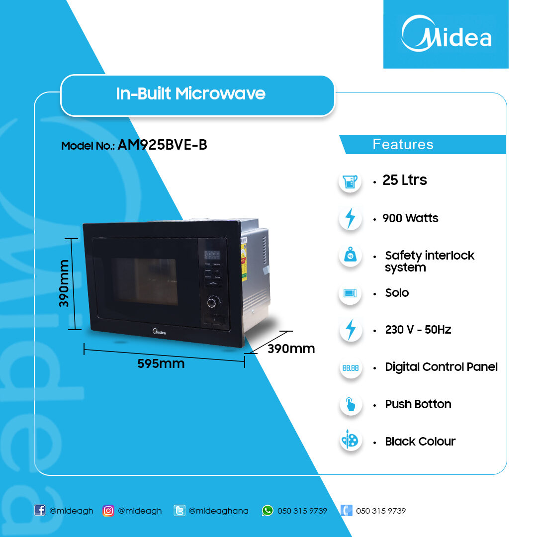 A major highlight of the AM925BVE-B is its sleek design. The unit features a premium mirror-finish door that gives it an elegant and reflective appearance, complementing other stainless steel appliances in a kitchen. It is a built-in model, meaning it fits into a dedicated cabinet space, ensuring a flush and streamlined look rather than taking up valuable countertop real estate. The interior cavity is constructed from durable stainless steel, which not only ensures longevity but also makes cleaning effortless. The oven operates with a microwave power output of 900 Watts, which is sufficient for quick heating, reheating, and cooking a variety of everyday meals. This power can be managed across five different power levels, offering flexibility for various cooking needs. A standout feature is the unique “Diamond Wave” pattern on the back wall of the cavity; this innovation is designed to distribute microwaves more evenly, leading to shorter cooking times and consistent heating of food. The appliance also includes useful auto-cook menus and options for defrosting by weight or time.