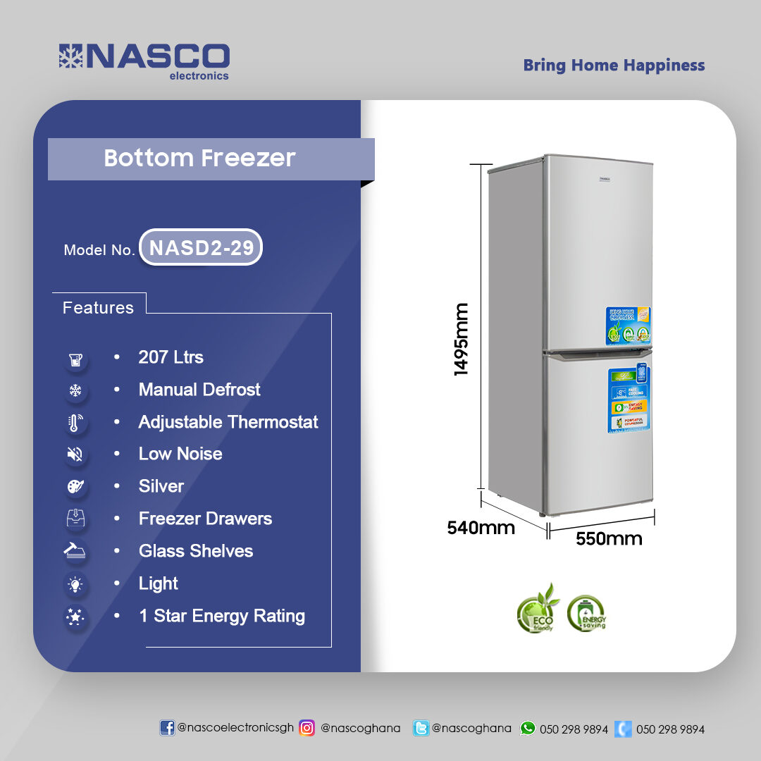 Nasco 207Ltrs Bottom Freezer Refrigerator
