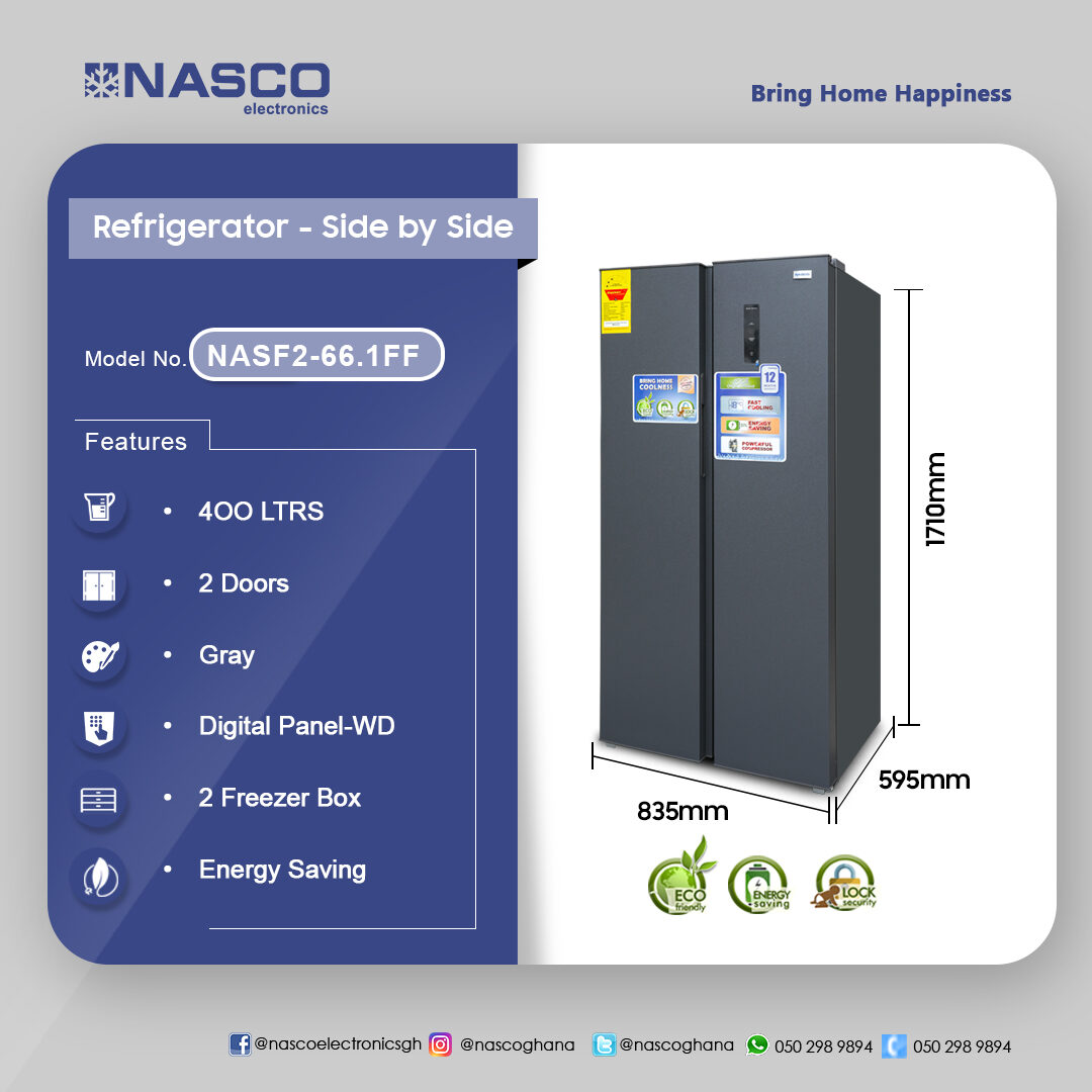Nasco 400Ltrs Side By Side Refrigerator Metalic Silver 66.