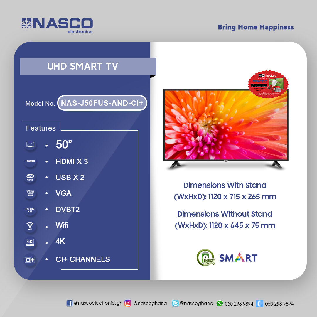 Nasco 50″ UHD 4K Digital Satellite Smart Television