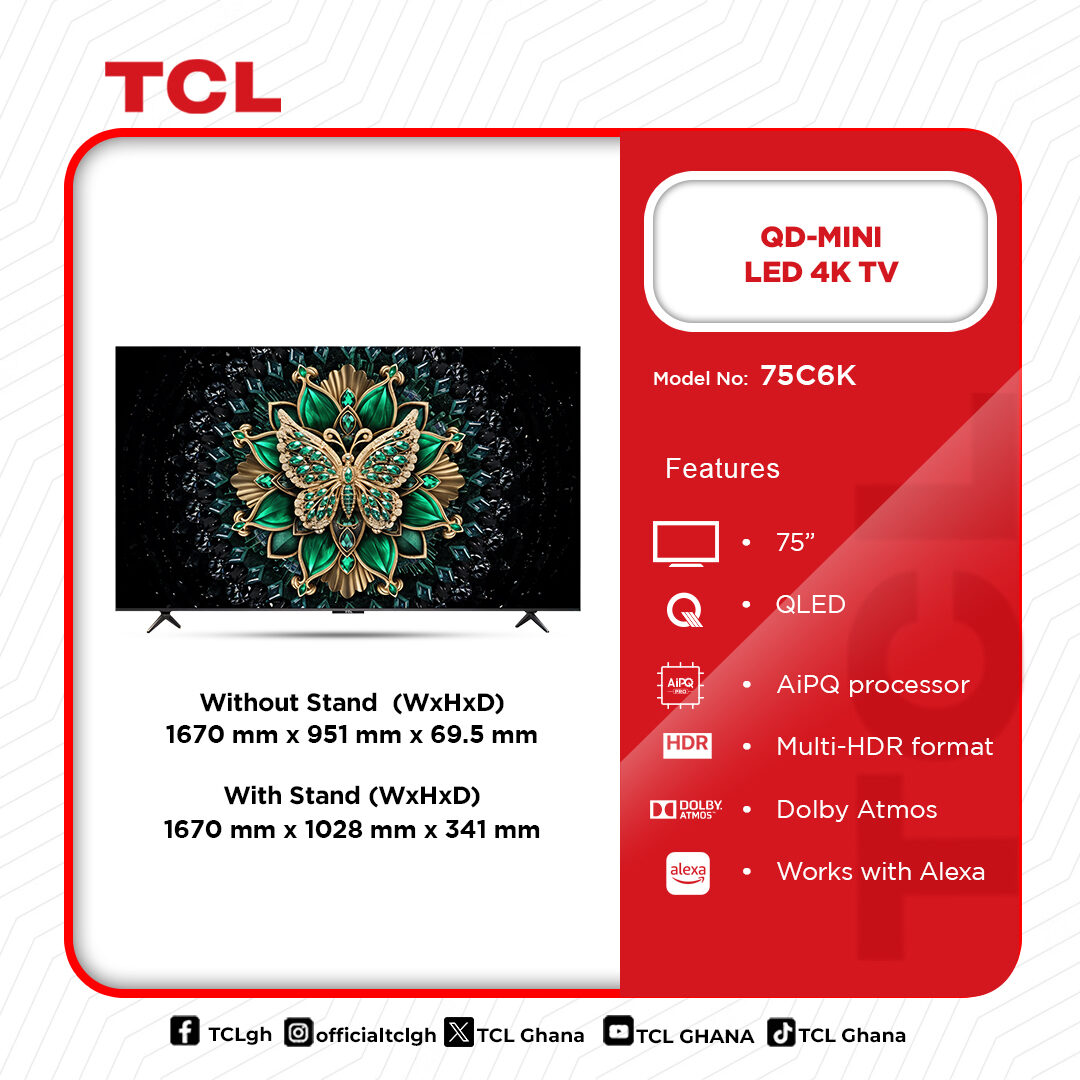 | Tcl 65" Qd Mini Led 4K Television | ₵15,799 Original price was: ₵15,799.₵10,999Current price is: ₵10,999. | December 28, 2025 |